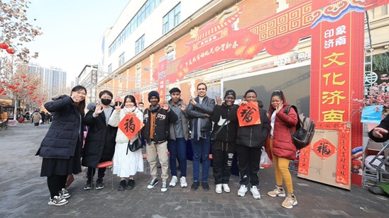 Duri Panashe from Zimbabwe said, "This is my first year in Jinan and the first time I have experienced traditional Chinese festivals. I find many of the traditional Chinese customs very interesting. For example, people hang the word 'Fu' on their door during the Chinese New Year, hoping for good luck and happiness for their families. I also plan to put the 'Fu' character on the door of my dormitory. I have already taken a photo of it and sent it to my family. I hope they will have good luck and happiness in the new year! I also hope to bring them to China to experience the Chinese New Year!
