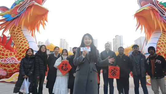 As a member of this party, Sayaka, who comes from Japan, said, "This year is the Dragon Year in China, and I found that there are dragon elements everywhere in the streets of Jinan. I am very moved. Today, I came to the western part of Jinan to experience a series of Spring Festival customs. I watched lanterns, learned Xinjiang dance, and made ceramic sculptures and paper-cutting, which allowed me to have a deeper understanding and interest in Chinese traditional culture. I have always been interested in Chinese culture, and today, I found that many fascinating cultures can only be experienced. Therefore, I plan to participate in more activities like this in the future. I also want to share my experiences with my friends and family at home so they can fall in love with Chinese culture and the Chinese festivals. Welcome everyone to 'celebrate Chinese festivals' in China!"