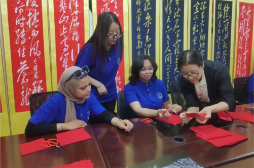 During the event, teachers introduced the international students to the allure of traditional paper-cutting art and demonstrated various techniques and patterns on the spot. The students, eager to try their hands at the craft, transformed thin sheets of paper into vibrant stories and lifelike images with just a pair of scissors. Under the guidance of the teachers, their lively and exquisite works took shape, filling the venue with joy and laughter.
