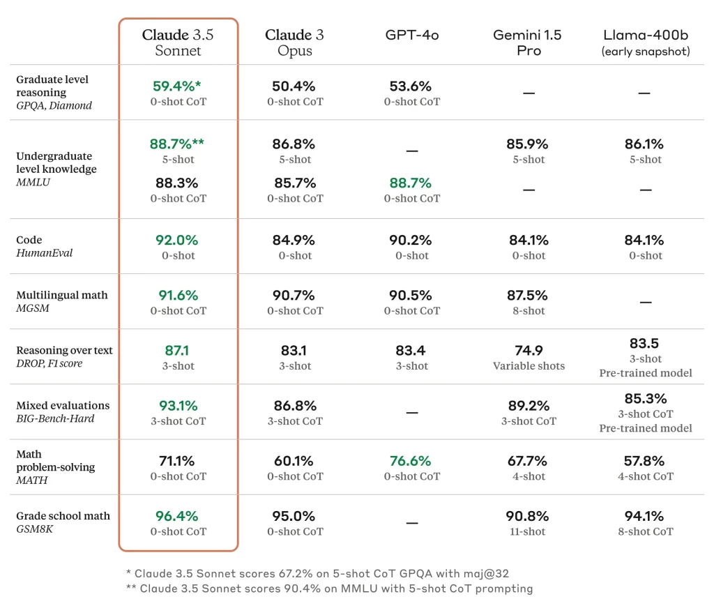 Claude 3.5 Sonnet es más preciso que GPT-4o y Gemini a la hora de generar código,transcribiendo texto a partir de imágenes,e incluso puede comprender mejor los matices de humor al dar respuestas.