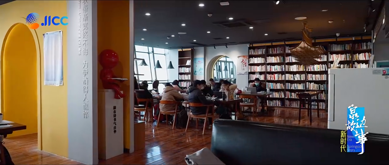 “The Raindrop Square branch in Jinan Innovation Zone was completed in July 2020. It is a Quancheng Study themed around “er’an” culture. Its walls are inscribed with phrases describing the three realms of life from Wang Guowei’s Poetic Remarks in the Human World, inspiring people with dreams,” Shi Qiang explained.