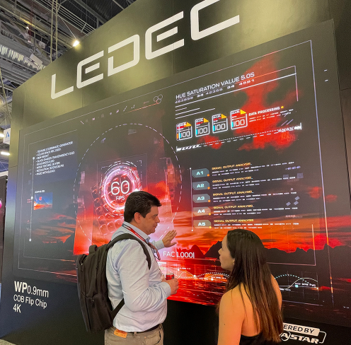 En InfoComm 2024,LEDEC presentó su nuevo modelo de pantalla WP de 0.9 mm de pitch (distancia entre píxeles) con tecnología COB,ideal para salas de juntas,ofreciendo una calidad de imagen superior y una precisión excepcional en la visualización de datos críticos.
