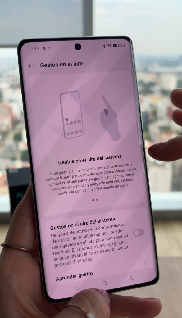 La experiencia de controlar tu smartphone sin tocarlo es innovadora y útil cuando,por ejemplo,estás cocinando el desayuno. Aunque otros modelos de realme ya habían introducido esta función,el GT 6T mejora la fluidez. Sólo necesitas aprender algunos movimientos básicos,como mover un dedo frente a la pantalla para seleccionar y abrir aplicaciones,o deslizar la palma de la mano para desplazarte.