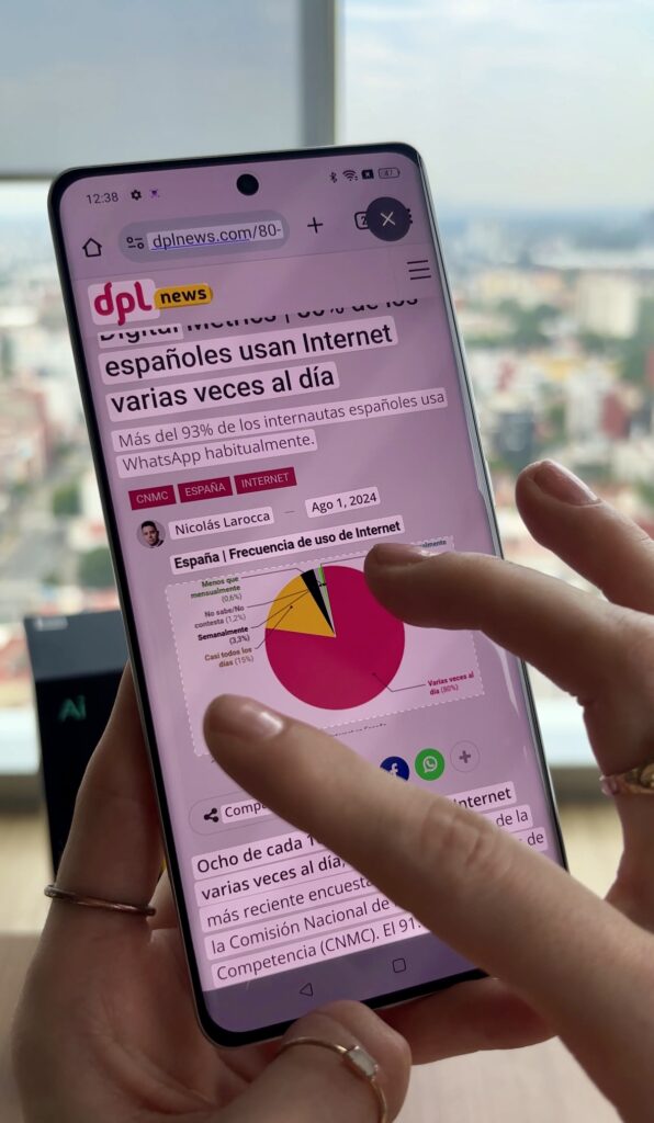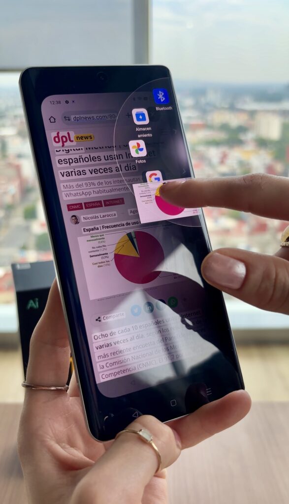 También tiene otras funciones con IA como el reconocimiento de pantalla,el cual permite extraer imágenes o texto de Internet,compartir capturas de pantalla o activar funciones rápidas de aplicaciones fácilmente a través un bucle inteligente que sale de la parte lateral derecha.