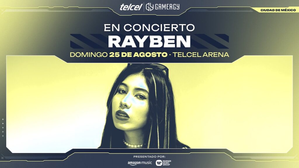 El cierre de Telcel Gamergy estará marcado por un espectáculo musical el domingo 25 de agosto. Amazon Music y Warner Music pondrán el ambiente con los beats de RAYBEN,cantautora,DJ y productora originaria de Iztapalapa,Ciudad de México,quien fusiona una mezcla de trap,hip-hop y música electrónica,consolidando un característico sonido Trap House. Con tan sólo dos años de experiencia,ha logrado ganarse un lugar en festivales conocidos mundialmente.