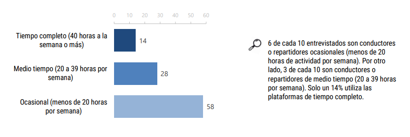 La opción de adherirse como empleados de las aplicaciones,según la encuesta,generaría más efectos negativos que positivos. El 57 por ciento de las personas consultadas en el estudio afirmó que dejaría de usar las plataformas para generar ingresos o buscaría otra actividad,debido a que ya no tendría las cualidades que hoy valora en esta ocupación.