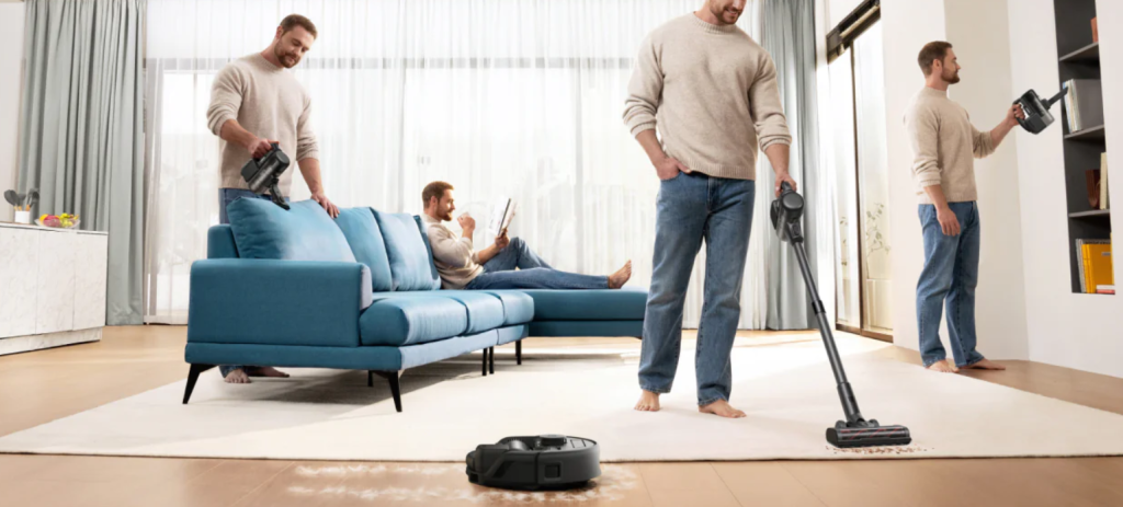El Eufy 3 en 1 E20 es un dispositivo de limpieza innovador que se transforma sin problemas entre un robot aspirador,una aspiradora portátil y un aspirador vertical inalámbrico,ofreciendo un uso simultáneo. Diseñado para la limpieza diaria e inmediata de manchas,este producto versátil se adapta sin esfuerzo a sus necesidades,combinando comodidad y potencia en una solución compacta.