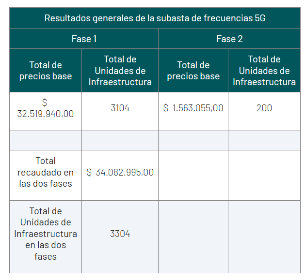 Los cinco operadores pagarán en total un millón 563 mil dólares por las licencias de espectro a nivel regional,lo cual se suma a los 32 millones 519 mil dólares recaudados en la primera fase de la subasta.