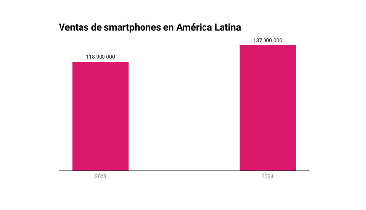 Se vendieron 137 millones de smartphones en América Latina en 2024,alcanzando un récord de ventas histórico para la región. La cifra es 15 por ciento superior a la informada un año atrás. El crecimiento se vio empujado por una recuperación en la demanda de dispositivos,impulsada a su vez por un ciclo de reemplazo y ofertas comerciales agresivas de los fabricantes.