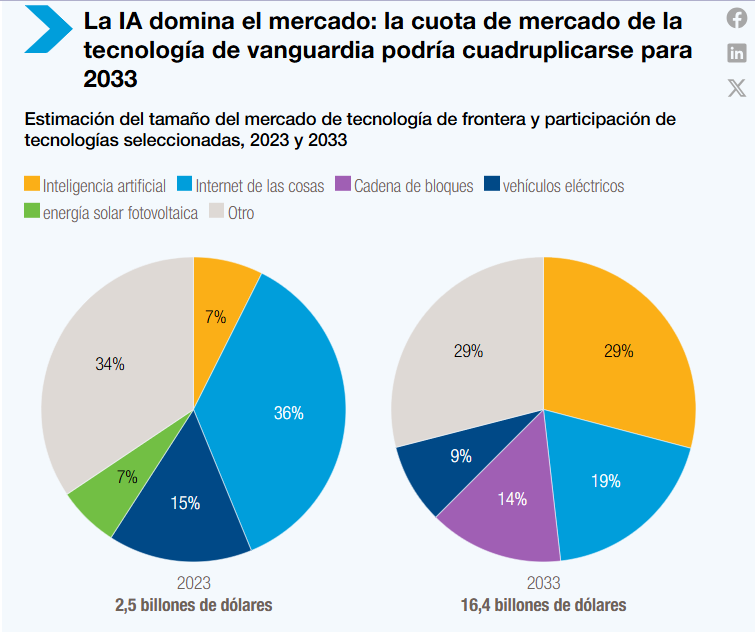 Estas cifras demuestran que existe una concentración de poder en el desarrollo de esta tecnología,y de mantenerse puede llegar a profundizar la desigualdad en el sector de la IA,que de acuerdo al mismo informe se convertirá en un mercado global de 4.8 billones de dólares para 2033,por lo que la UNCTAD establece una hoja de ruta para evitar incrementar las brechas.