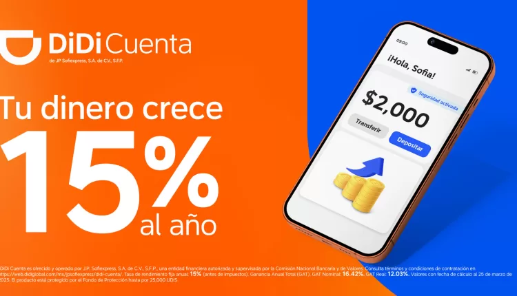 Grupo DiDi lanzó DiDi Cuenta,su nueva propuesta financiera en México que ofrece un rendimiento anual del 15 por ciento,posicionándose como la tasa más alta del mercado entre las entidades financieras. El producto,que puede solicitarse 100 por ciento en línea,permite disponer del dinero en cualquier momento y sin requerir montos mínimos.